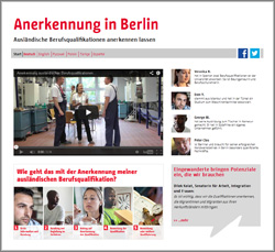 Die Kampagne Anerkennung-in-Berlin im Auftrag der Berliner Senatsverwaltung für Arbeit, Integration und Frauen zur verbesserten, multilingualen Information für alle Interessierten konnte weiter ausgebaut werden. Das Projekt wird über das Content Management System idbase mit einem Wartungsvertrag bis Ende 2015 bei idpraxis gehostet.